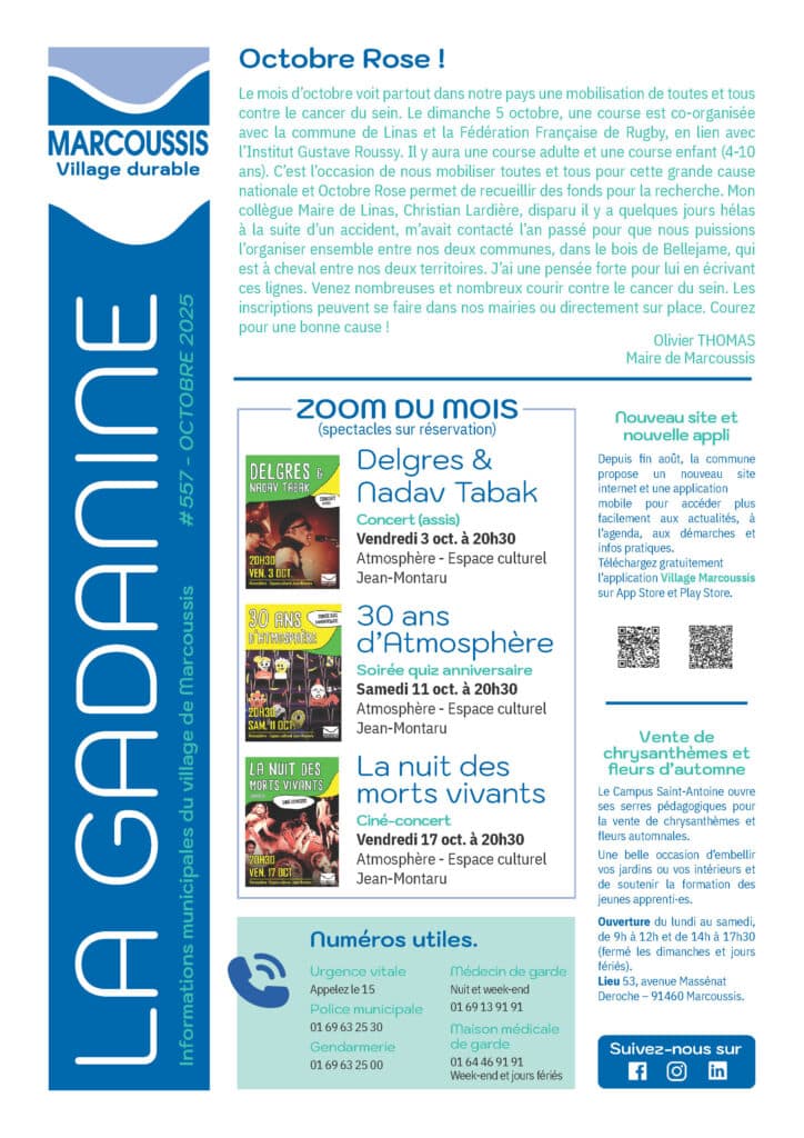 Ne manquez rien de la vie locale à Marcoussis. Découvrez ici les actualités, événements et initiatives qui rythment votre commune au quotidien.