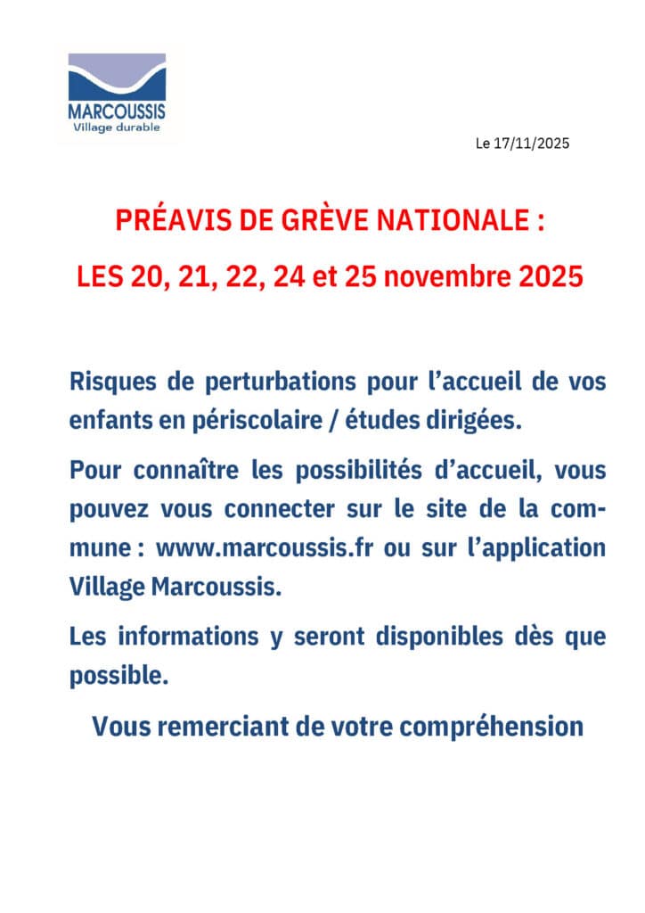 Un préavis de grève national a été déposé pour les 20, 21, 22, 24 et 25 novembre