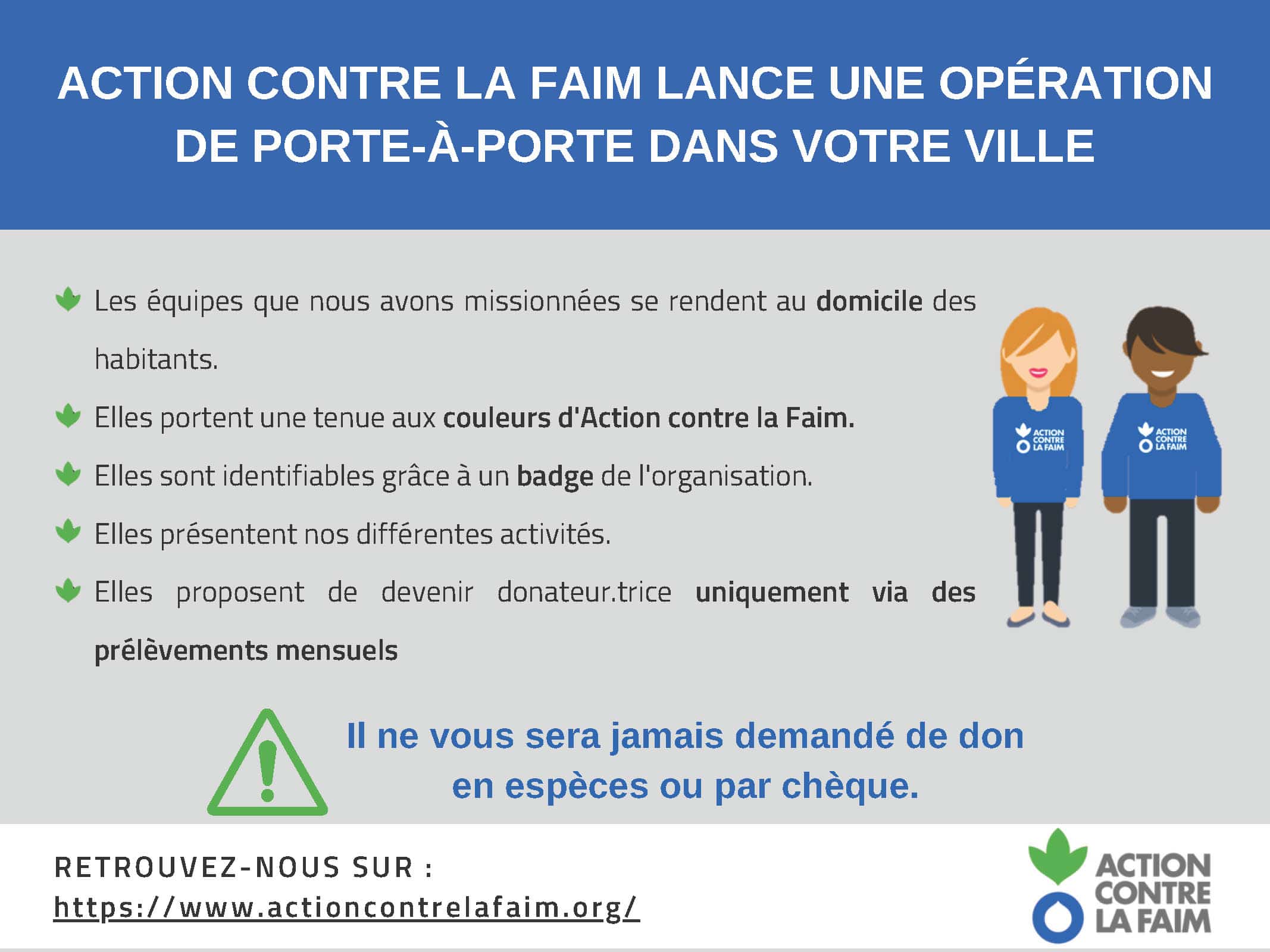 Les équipes seront identifiables et ne réaliseront aucune quête en espèces ou en chèques.