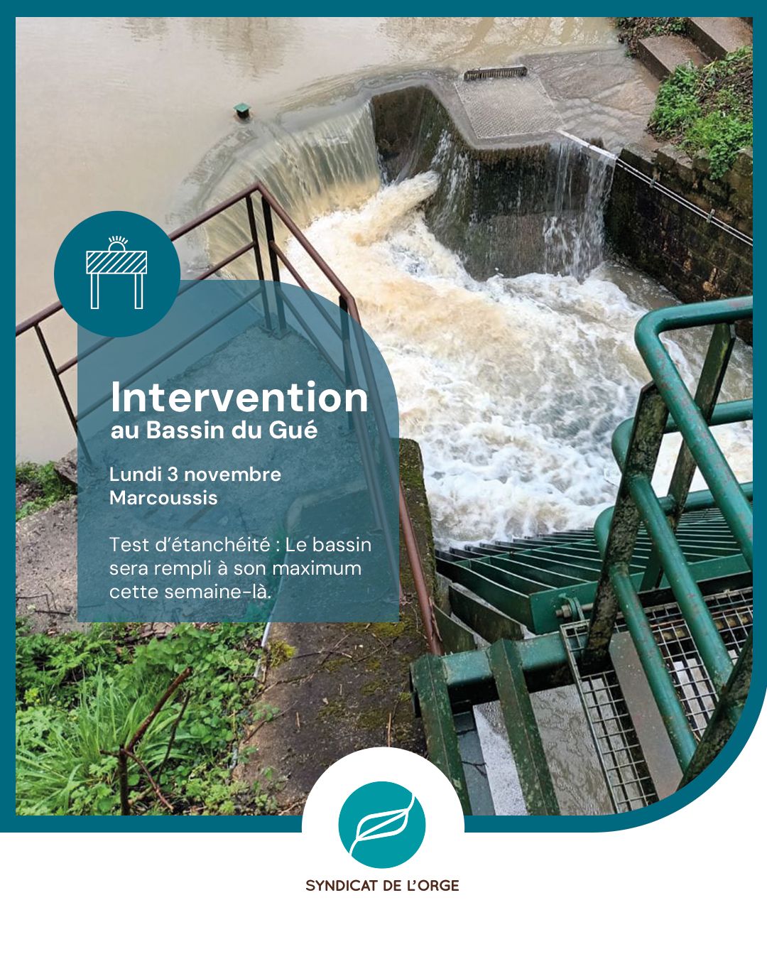 Ă€ la suite des travaux de sĂ©curisation de l’ouvrage de sortie du bassin du GuĂ© effectuĂ©s en mai dernier, le Syndicat va rĂ©aliser Ă partir du lundi 3 novembre, une mise en charge du bassin afin de tester l’étanchĂ©itĂ© sur l’ensemble de l’ouvrage.