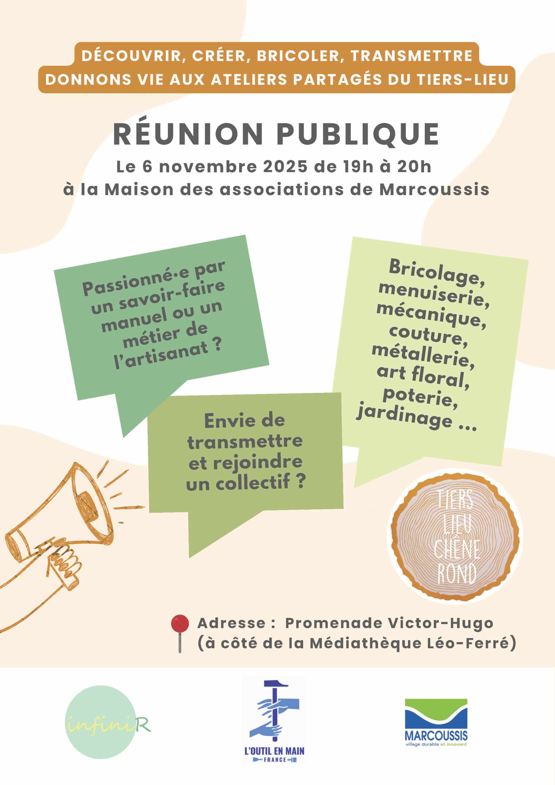 🛠️ Réunion publique – Donnons vie aux “Ateliers Partagés” du tiers-lieu !